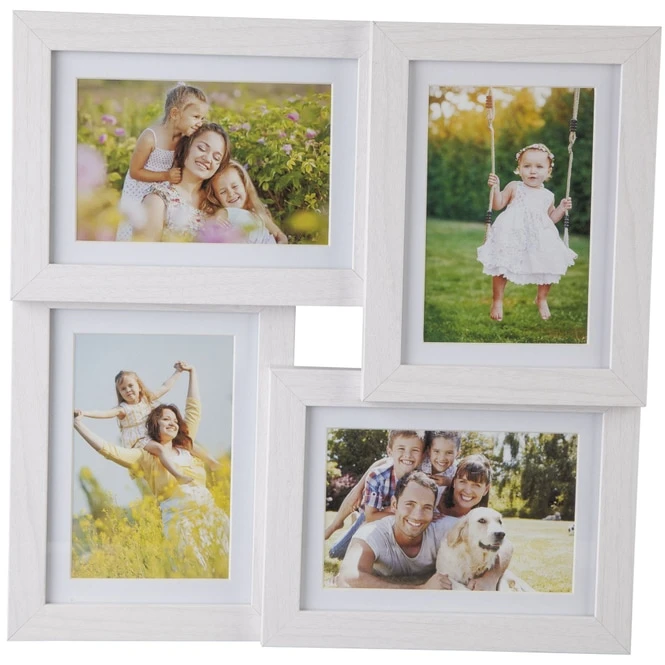 Wenn Sie auf der Suche nach einem außergewöhnlichen Bilderrahmen sind, der Ihre liebsten Aufnahmen zu einem echten Hingucker werden lässt, haben wir hier genau das Richtige! Die hinreißende Bildergalerie ist die moderne Art, um die schönsten Erinnerungen gebührend zur Schau zu stellen. Sie besteht aus Holz, misst 35 x 3,5 x 35 cm und eignet sich für vier Fotos à 12,5 x 17,5 cm bzw. à 17,5 x 12,5 cm. Dabei ist sie vor allem aufgrund der liebevollen Gestaltung ein dekoratives Highlight, das sich nicht nur nahtlos in jeden Raum einfügt, sondern zudem in Sekundenschnelle persönliche Akzente darin setzt. Also schnappen Sie sich den niedlichen Fotorahmen und lassen Sie die Fantasie beim Schmücken frei walten!