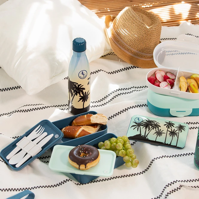 - Lieferumfang: 1 Set, bestehend aus 2 Brotdosen (inkl. Deckel), Messer, Gabel, Löffel und Gummiband