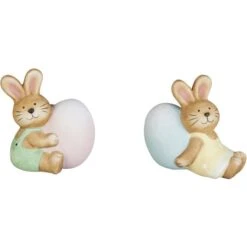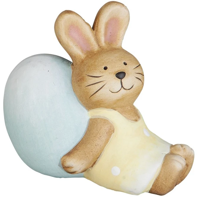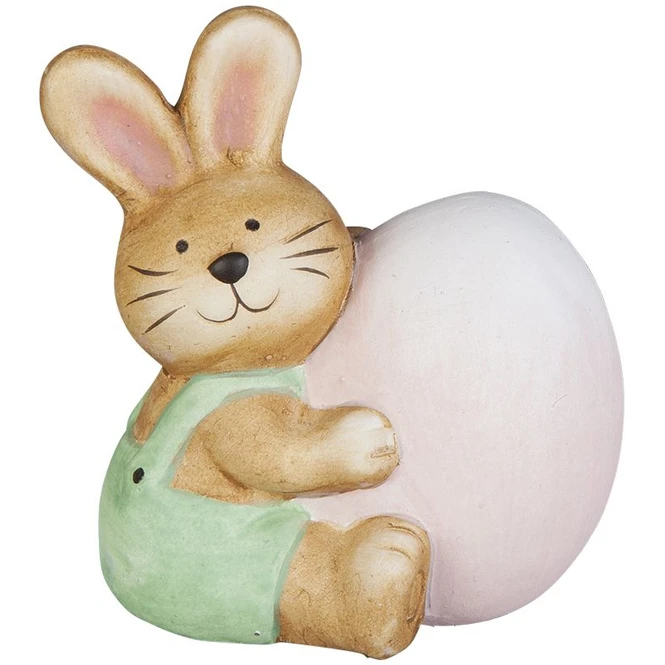 Trendsetter, aufgepasst! Wenn ihr euer Zuhause nach dem ungemütlichen Winter mithilfe geschmackvoller Dekoration hübsch herrichten wollt, um den Osterhasen stilecht willkommen zu heißen, liegt ihr hiermit goldrichtig! Der niedliche Dekohase ist ganz sicher der fröhlichste Bote der blühenden Zeit und somit ein Muss für jedes Zuhause. Er besteht aus Terrakotta, ist 8 x 5 x 8 cm groß und in einer von zwei liebenswerten Gestaltungen erhältlich (eine Vorauswahl ist leider nicht möglich). Diese fügt sich nicht nur nahtlos in jeden Raum ein, sondern verbreitet zudem auch ein wohliges Osterambiente, von welchem ihr und eure Lieben ganz sicher nicht genug bekommt. Also schnappt euch das tolle Osterhäschen und lasst eurer Kreativität beim Schmücken freien Lauf!