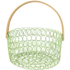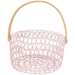 Trendsetter, aufgepasst! Wenn ihr es mögt, eurer Fantasie beim Dekorieren freien Lauf zu lassen und eure vier Wände in Sekundenschnelle in eine behagliche Wohlfühloase verwandeln möchtet, werdet ihr den niedlichen Dekokorb lieben! Dieser ist nicht nur ein echter Augenschmaus, sondern darüber hinaus auch genau das Richtige, um mühelos persönliche Akzente in der Inneneinrichtung zu setzen. Er besteht aus Metall, verfügt über einen Durchmesser von ca. 20 cm und kommt in einer von drei fröhlichen Farben samt hölzernem Henkel zu euch nach Hause (eine Vorauswahl ist leider nicht möglich). Damit fügt sich der hinreißende Drahtkorb nahtlos in jeden Raum ein und vertreibt auch den letzten Winterfrust mit Leichtigkeit. Also schnappt ihn euch und lasst eure Kreativität beim Bestücken frei walten!