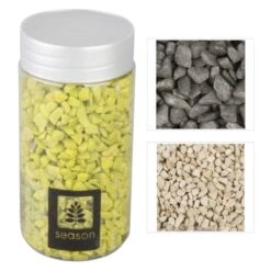 Sie gehören zu den kreativen Köpfen, die es mögen, in ihren vier Wänden mithilfe farbenfroher Dekoration individuelle Akzente zu setzen, um das Zuhause in eine behagliche Wohlfühloase zu verwandeln? Dann dürfen Ihnen die vielseitigen Dekosteine keineswegs fehlen! Diese eignen sich nämlich optimal dazu, um der Fantasie Ausdruck zu verleihen und sich beim Schmücken von Flur, Wohnzimmer und Co. ganz nach Belieben munter auszutoben. Das Granulat ist grobkörnig und in einer 550 g-Dose in verschiedenen Farben erhältlich, sodass Sie ganz sicher die von Ihnen präferierte Töne entdecken. Ganz gleich, ob Sie es in eine Vase oder ein Windlicht geben oder kunstvoll auf einem Teller oder Tablett verstreuen – mit den Steinen können Sie Ihrer Fanatasie freien Lauf lassen. Also ran an die Dose und grenzenlosen Dekospaß erleben!