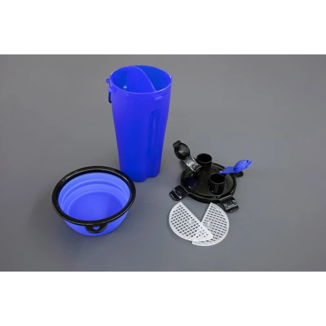 - Mit einem 250 ml Silikon-Reisenapf zur direkten Bereitstellung des Futters oder Wassers