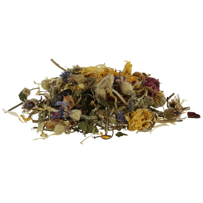 - bestehend aus: Wiesengräser, Äpfel, Hagebutten, Blütenblätter, Aromatische Kräuter, Brennnessel und Pfefferminze