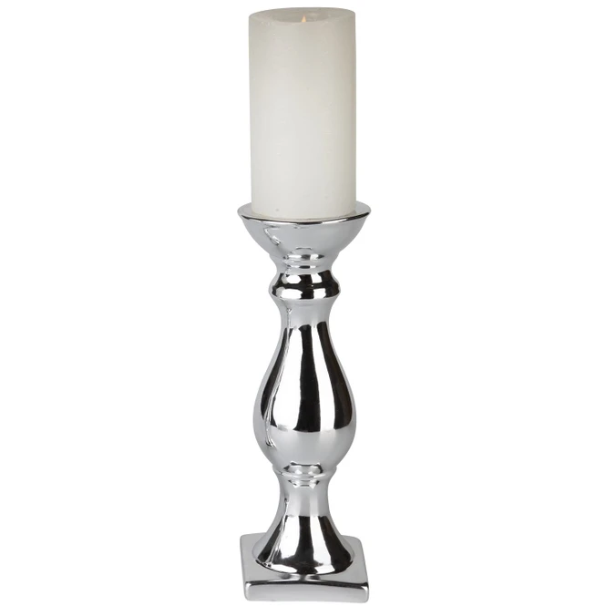 Sie mögen es, in Ihrem Zuhause mittels stilvoller Dekoration individuelle Akzente zu setzen und legen dabei großen Wert auf unkomplizierte Stücke, welche sich vollkommen nach Ihrem Belieben in Szene setzen lassen? Dann werden Sie den hinreißenden Kerzenständer lieben! Dieser ist nämlich dank der liebevollen Gestaltung ein echter Augenschmaus und somit genau das Richtige, um die Fantasie beim Schmücken frei walten zu lassen. Er besteht aus glänzendem Keramik, ist ca. 9 x 9 x 26,5 cm groß und insbesondere aufgrund des edlen Silbers ein dekoratives Highlight, von dem Sie und Ihre Lieben ganz sicher nicht genug bekommen. Ganz gleich, ob im Hausflur, Wohn- oder Esszimmer – mit dem niedlichen Kerzenhalter bleiben fortan keinerlei Dekowünsche mehr offen. Also schnappen Sie ihn sich und legen Sie gleich los!