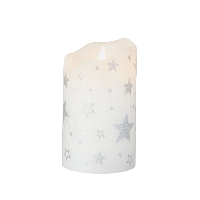 LED Kerze – Sterne weiß/silber – ca. 7,5 x 12,5 cm