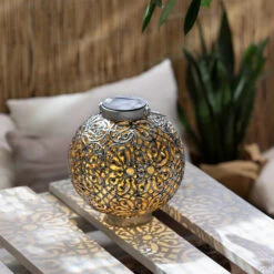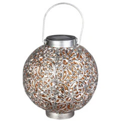 Trendsetter, aufgepasst! Wenn ihr nicht genug von außergewöhnlicher Dekoration bekommt, mit der ihr euer Zuhause binnen Sekunden in eine paradiesische Wohlfühloase verwandeln könnt, werdet ihr dieses Stück lieben! Die niedliche LED-Solarlaterne ist genau das Richtige, um innerhalb der vier Wände, auf der Terrasse oder im Garten leuchtende Akzente zu setzen und der Fantasie beim Schmücken freien Lauf zu lassen. Sie besteht aus Metall, misst ca. 20,5 x 20,5 x 32,5 cm und ist vor allem aufgrund der liebevoll gestalteten Ornamente ein echter Augenschmaus. Durch das Solarpanel lädt sich die tolle Lampe bei Tag auf, während sie im Dunkeln schließlich vor Energie strahlt und euch jederzeit fröhlich den Weg beleuchtet. Also schnappt sie euch und taucht Haus und Hof in ein leuchtendes Lichterfest!