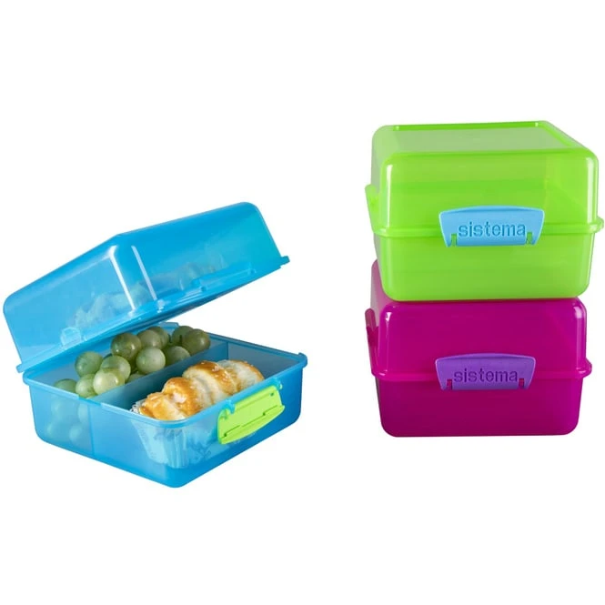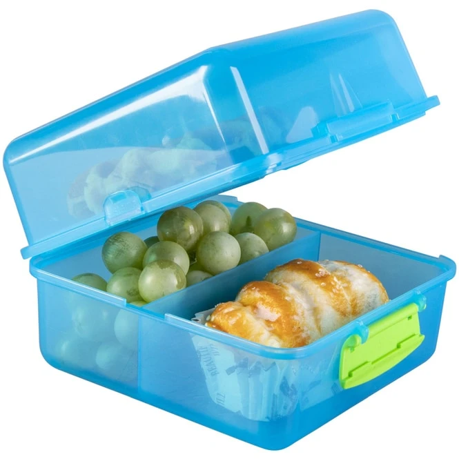 Wenn es auf der Arbeit, in der Schule oder auf Reisen wieder einmal etwas länger dauert, seid ihr mit der coolen Lunchbox hervorragend ausgestattet. Diese sieht nämlich mit ihren knalligen Farben (eine Vorauswahl ist leider nicht möglich) nicht nur supercool aus, sondern ist auch genau das Richtige, um jederzeit eine nötige Portion an lebenswichtigen Vorräten dabeizuhaben. Die Dose besteht aus robustem Kunststoff, misst 12 x 12 x 9,5 cm und verfügt über drei Fächer, von denen zwei separat geöffnet werden können. Durch ihr Fassungsvermögen von 1,4 Litern könnt ihr von nun an mühelos genügend Lebensmittel mitnehmen, wehalb sie schnell zum unverzichtbaren Alltagsbegleiter wird. Aus diesem Grund ist die Brotdose ist es das optimale Zubehör, welches fortan während keinerlei Outdoor-Aktivitäten mehr fehlen darf.