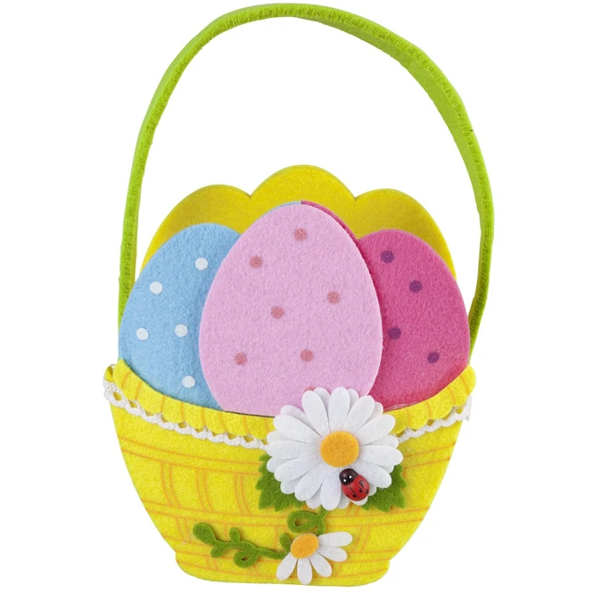 Bunte Eier und leckere Süßigkeiten sind in der österlichen Zeit einfach unerlässlich und dürfen weder bei Jung noch Alt fehlen. Denn die prall gefüllten Nester bringen nicht nur die Kleinen im Handumdrehen zum Strahlen, denn auch Erwachsene haben großen Spaß daran, welche zu suchen, um sich anschließend über den köstlichen Inhalt herzumachen. Damit Sie die Leckereien in diesem Jahr auf besonders dekorative Weise verschenken können, haben wir hier genau das Richtige. Mit dem kunterbunten Osterkörbchen kommen Ihre Präsente in Form von Ostereier, Schokolade und Co. jederzeit optimal zur Geltung. Es besteht aus liebevoll gestaltetem Filz, misst ca. 16,5 x 8 x 26 cm und ist vor allem dank dem farbenfrohen Design ein fröhlicher Osterbote. Somit eignet sich der Korb nicht nur ideal, um die Eier vollkommen sicher aufzubewahren, sondern überdies auch, um die heimischen vier Wände in eine heitere Frühlingsatmosphäre zu tauchen und individuelle Akzente zu setzen. Also lassen Sie Ihrer Fantasie freien Lauf und schmücken Sie munter drauflos!