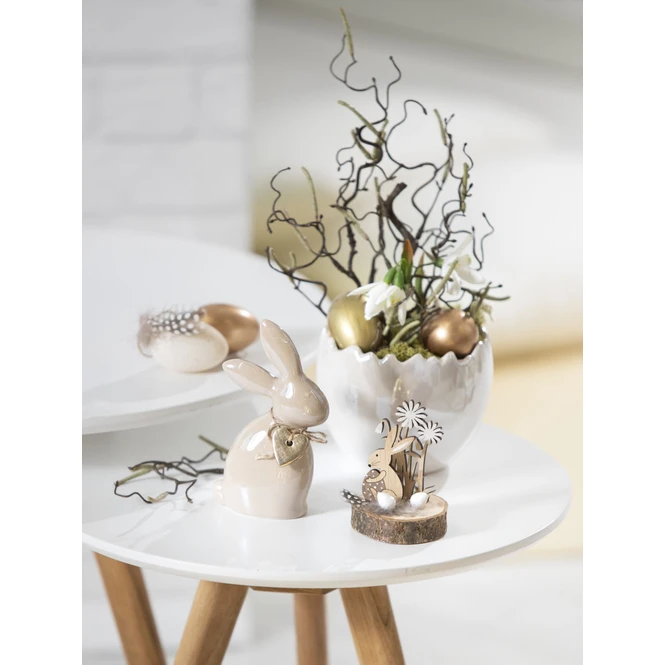 Hobbygärtner und -gärtnerinnen werden von dem österlichen Pflanztopf im Frühjahr ganz sicher nicht genug bekommen! Dieser ist aufgrund der liebevollen Gestaltung nämlich ein echter Augenschmaus, welcher Dekoherzen im Handumdrehen höherschlagen lässt. Er besteht aus glänzendem Dolomit, verfügt über einen Durchmesser von 13 cm und fügt sich mithilfe des zeitlosen Weiß nahtlos in jeden Raum ein. In Kombination mit zarten Blümchen (nicht im Lieferumfang enthalten) verwandelt der niedliche Übertopf das Zuhause in eine behagliche Wohlfühloase und ist somit der ideale Bote der blühenden Jahreszeit. Also schnappt ihn euch und erlebt grenzenlosen Dekospaß!