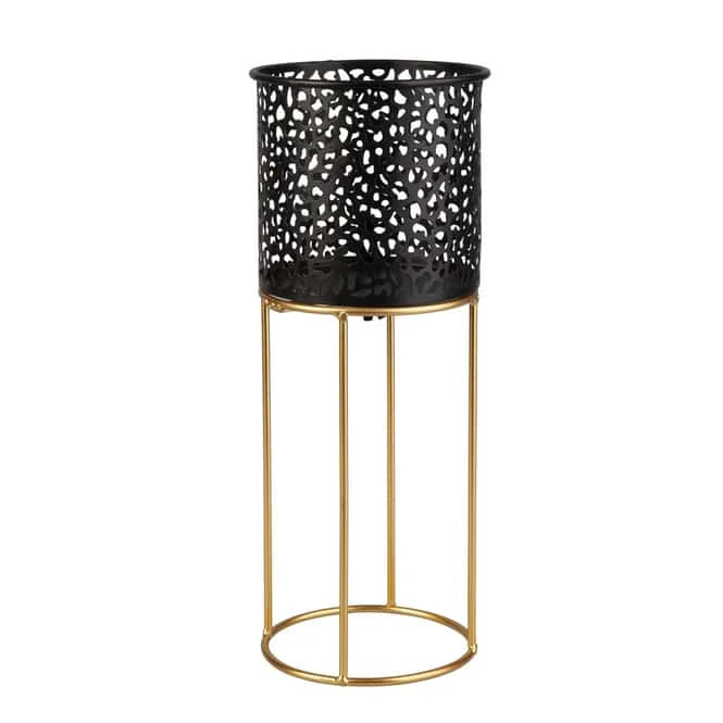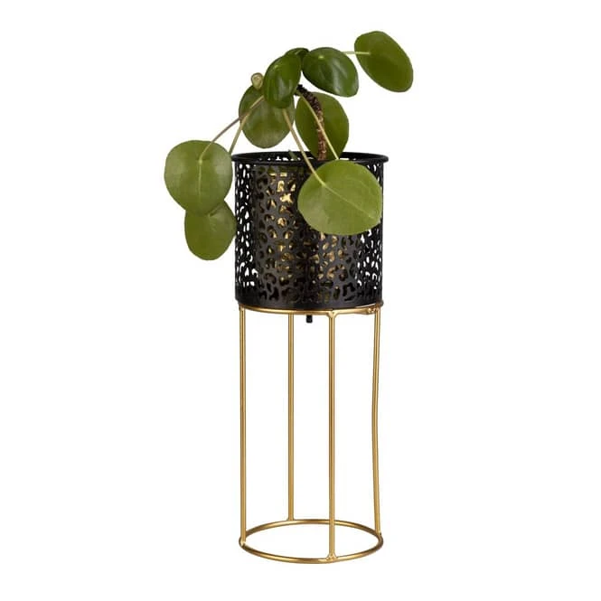 Pflanztopf mit Ständer – schwarz/gold – aus Metall – ca. 13 x 33 cm