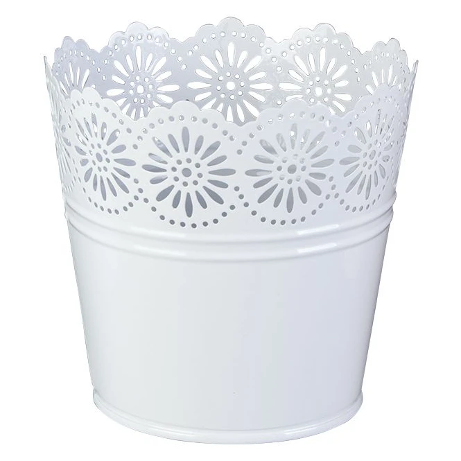 Mit dem niedlichen Pflanztopf könnt ihr euch beim Gärtnern munter austoben und zeigen, dass ihr ein Händchen für echte Trends habt! Dieser ist aufgrund des edlen Spitzenrands nämlich ein echter Blickfänger, der Dekoherzen im Handumdrehen höherschlagen lässt. Er besteht aus Metall, ist in zwei verschiedenen Größen erhältlich und fügt sich mit seinem reinen Weiß nahtlos in jeden Raum ein. Aus diesem Grund ist der tolle Blumentopf genau das Richtige, um die blühende Jahreszeit mit geschmackvoller Dekoration willkommen zu heißen und die Fantasie frei walten zu lassen. Also ran an Pflanztopf, Blumen und Co. und gleich loslegen!