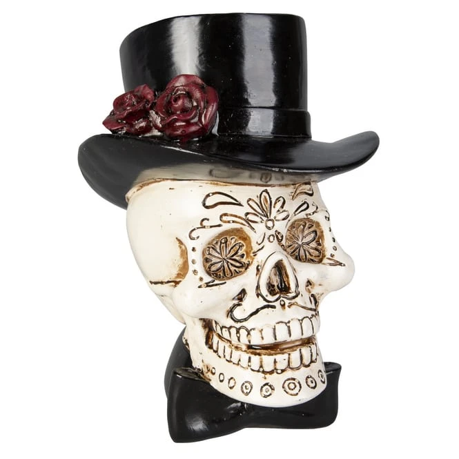 Totenkopf – aus Polyresin – ca. 11 x 10 x 13,5 – schwarz/weiß