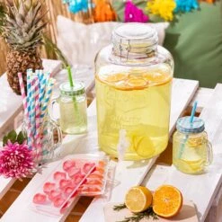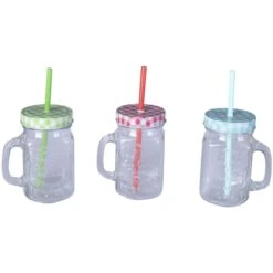 - Material: Glas, Deckel aus Metall, Trinkhalm aus Kunststoff