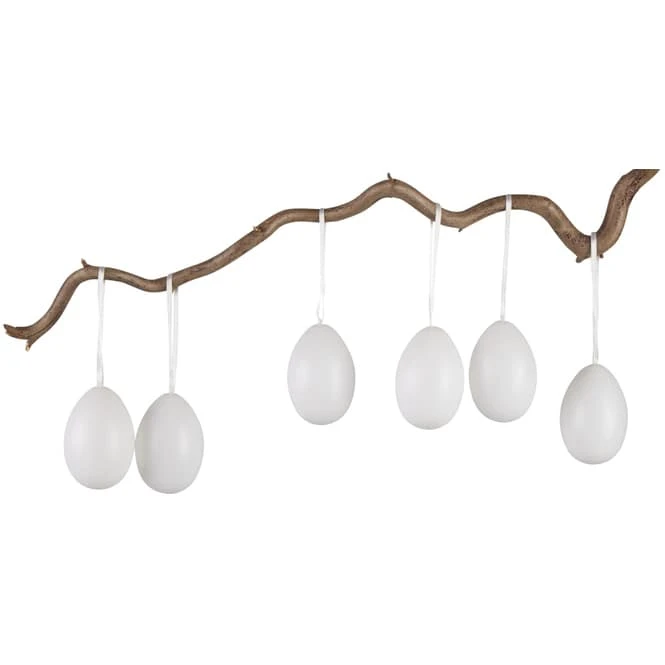 Sie stehen für Fruchtbarkeit und sind neben dem Hasen das Ostersymbol schlechthin: Eier. Aus diesem Grund dürfen sie gerade zu dieser Zeit in keinem geschmückten Heim fehlen. Wenn Sie auf der Suche nach dekorativen Stücken sind, mit welchen Sie Ihre Lieben binnen Sekunden in eine heitere Osterstimmung versetzen können, haben wir hier genau das Richtige! Die klassischen Ostereier eignen sich optimal, um Ihre heimischen vier Wände in ein heimeliges Frühjahrsambiente zu tauchen. Diese bestehen aus robustem Kunststoff, sind jeweils ca. 8 x 5,5 cm groß und in kommen in klassischem Weiß zu Ihnen nach Hause. In Kombination mit weiteren österlichen Elementen (separat erhältlich) sind die Eier stilvolle Highlights, die nicht nur für echte Trendsetter unverzichtbar sind.